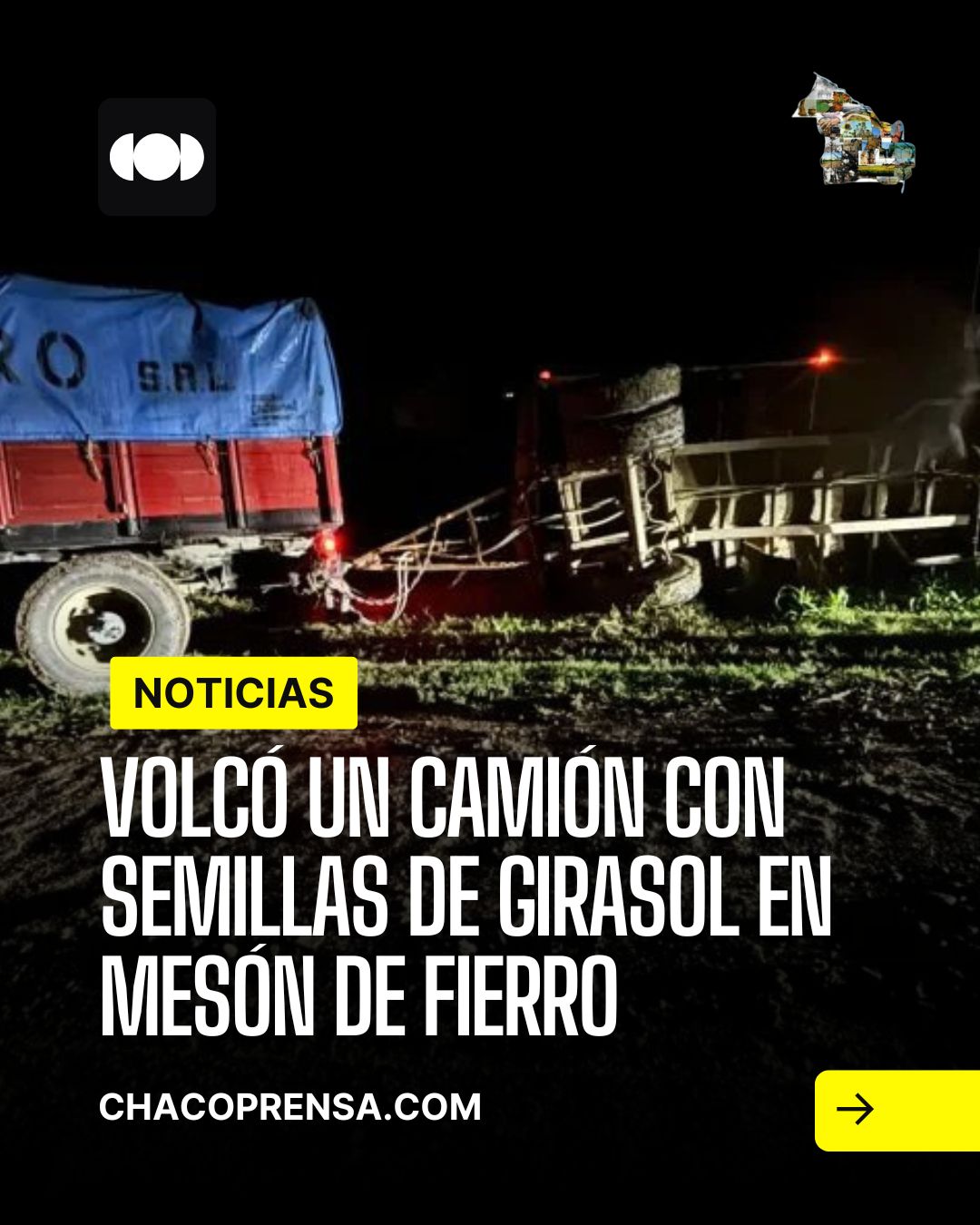 La Comisaría de General Pinedo intervino en un siniestro vial ocurrido este viernes a la 1.45 en un camino vecinal de Mesón de Fierro, donde un camión Chevrolet que transportaba semillas de girasol terminó volcando su acoplado.