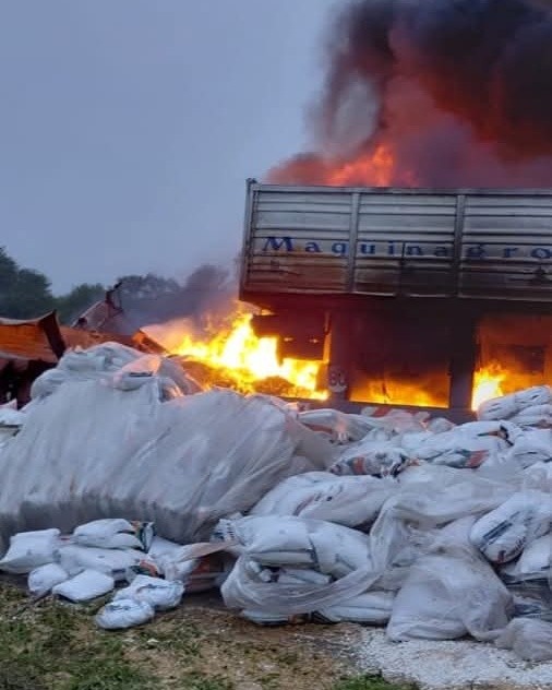 Impactante y dramático accidente en la mañana de este martes en Villa Berthet. Dos camiones que transportaban alimentos balanceados protagonizaron un fuerte choque sobre la Ruta Provincial N° 4 y, tras el impacto, ambos vehículos se incendiaron por completo, generando una escena desesperante.