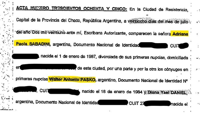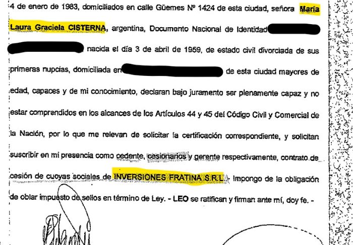 Facsímil del registro notarial que confirma que familiares de Sabadini cedieron una sociedad a Pasko.