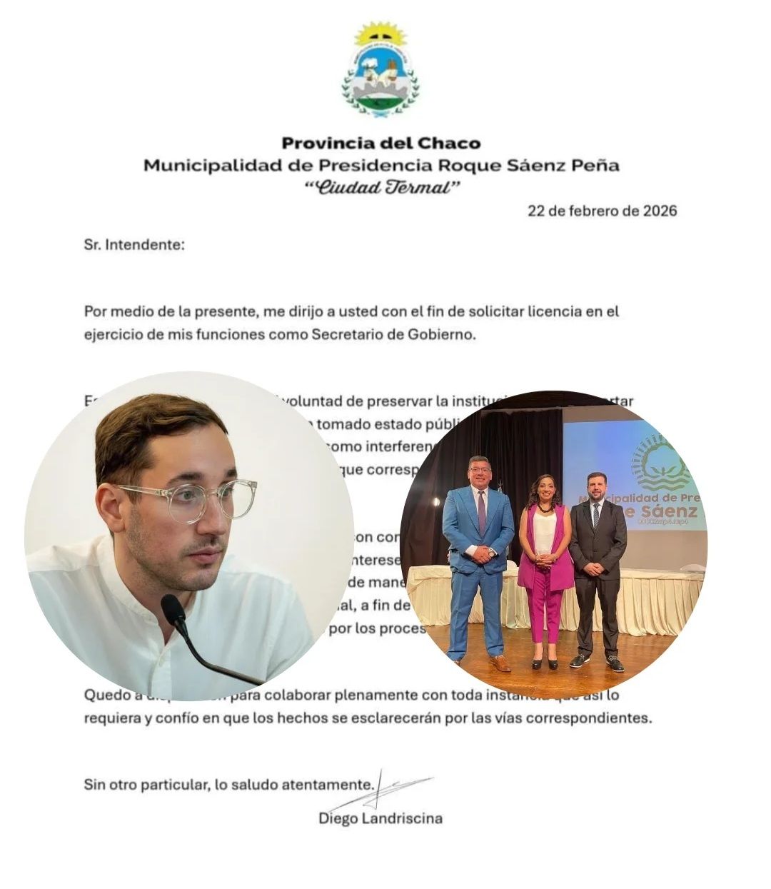 El escrito señala que “el pedido de licencia del secretario de Gobierno, Diego Landriscina, es una tomada de pelo. No es un hecho aislado. Se produce inmediatamente después de mi denuncia penal, que acompañamos con documentación, pruebas y elementos probatorios que exponen cómo el Municipio operó con recursos públicos en inversiones financieras de alto riesgo, sin autorización, generando pérdidas de aproximadamente 1.500 millones de pesos.